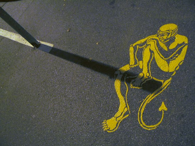 Roadsworth is a graffiti artist in Montreal who uses existing shapes like crosswalks, and stencils on top of them to create biting criticisms of modern car culture.